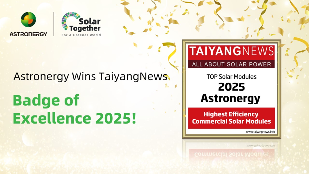 Recently, Astronergy’s high-efficiency ASTRO N Series modules once again secured a lasting position among the industry’s leading products and won TaiyangNews “Badge of Excellence 2025”. This marks the third consecutive year the company has received this recognition, following previous honors in 2023 and 2024.