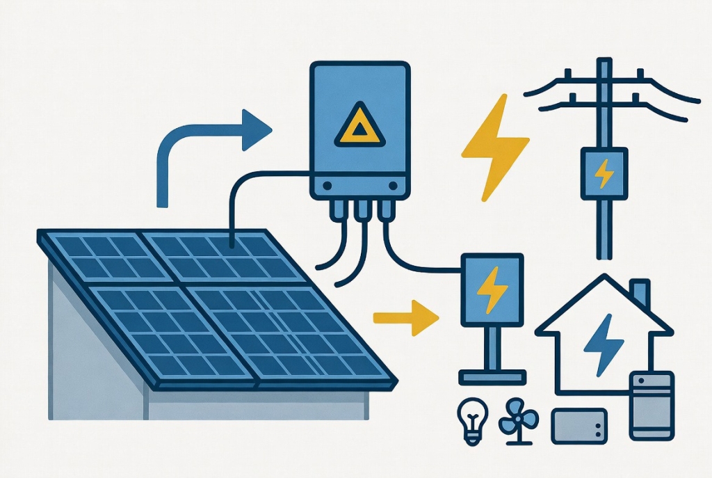 Backup power means that the system can continue supplying selected loads when the utility grid is unavailable. This requires more than PV modules alone. A backup-capable setup typically includes: